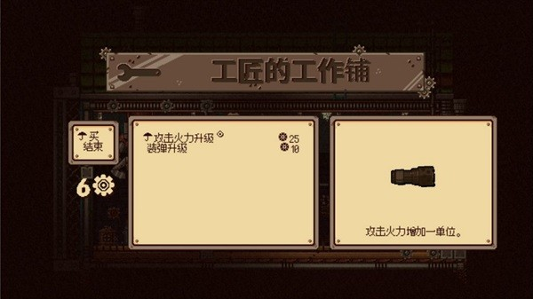除了主线,《枪伞游侠》的整体流程趋同性很强,也就是玩家在主线中并不会得到很出色的成长,以应对后续而来的敌人,而是通过寥寥数项提升(换弹速度、子弹伤害)来强化枪械。