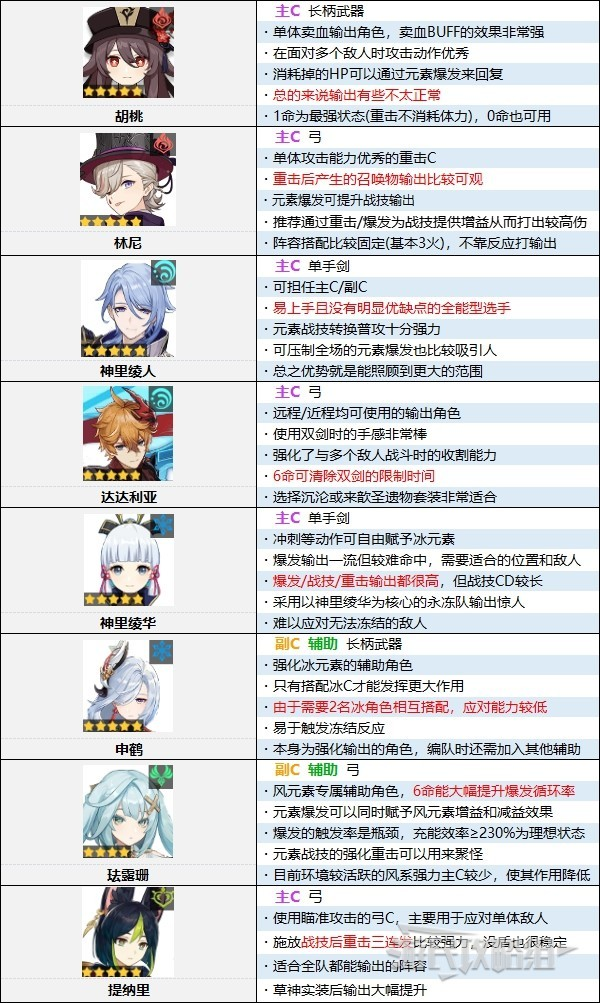 ※风元素角色的评价由于圣遗物【翠绿之影】四件套的减益效果多数都会上榜,其中具有特殊减益能力的角色评级较高。