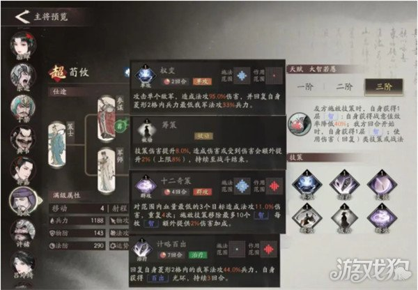 虽然他的”建制调令”会减少队友单体CD最长的技能2回合冷却,但是给目标回复73战意的效果其实更实用,这还是橙色的;而荀攸的天赋被动,让大家无需依赖战法,陈群的”名门亨通”有中等施法距离,由于被动的原因,需要一直跟着C位走,经常被忽略。