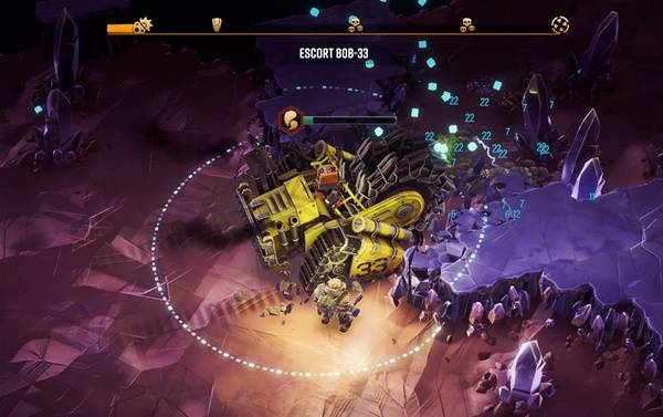 任务初期,玩家需要一路突进抵达降落区域,并布设炸药好为掘进机炸开向下的路。一旦小鲍勃-33安全上路,玩家便可随其一并前往矿洞深处,直至抵达最终阶段:开采奥魔兰心石。心石外壳的尺寸和硬度不是十字镐对付得了的,这时候就该掘进机登场了。不过这也会触发奥魔兰之心的防御机制,例如召唤发射激光的晶石柱,此时玩家必须将其拆除来维持开采进程。