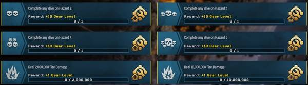 装备同时也包含等级,这将决定加成数值的高低。可掉落的最低装备等级取决于里程碑的完成进度,比如当你初次完成风险等级2的深潜,接下来掉落的最低装备等级将提升至11级。你也可以完成“将玩家等级升至4级”里程碑,轻松获取+1装备等级。