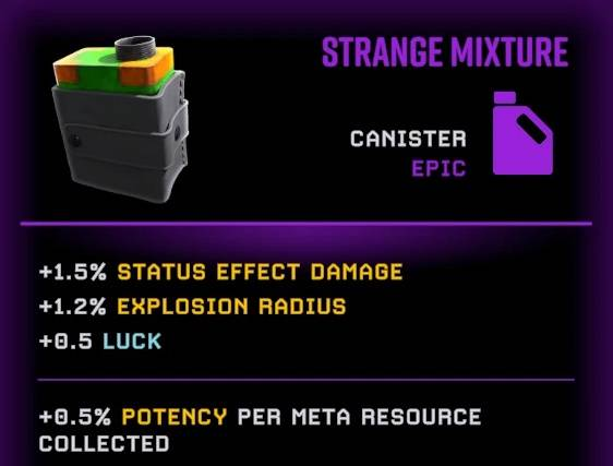 比如说(下面的)史诗品质储罐“谜之混合物”,将在你获取可带回的矿石材料的同时提供效果强度加成;又例如传说品质的“一字螺丝刀”,将使空降舱等待时间延长12秒。