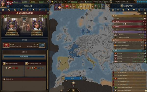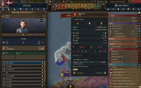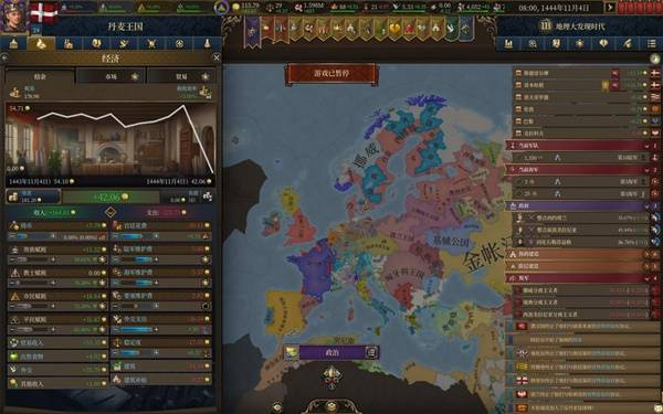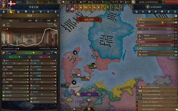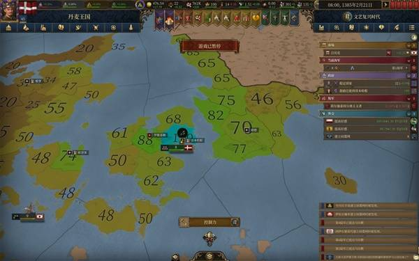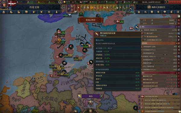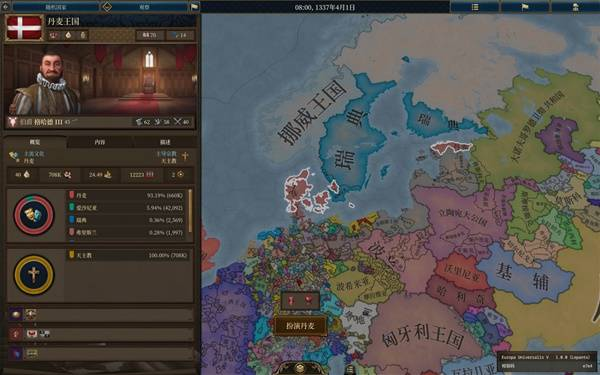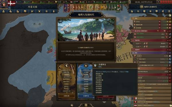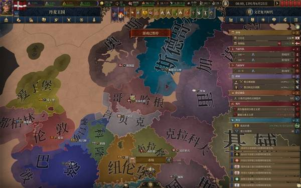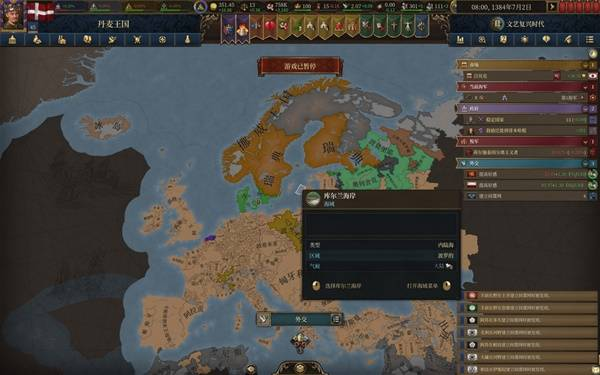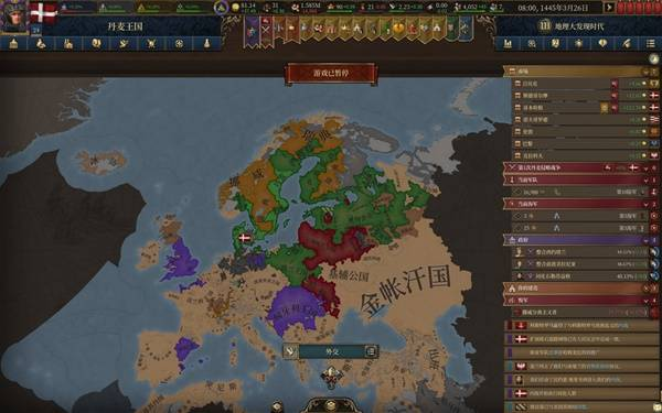 体验了20来个小时的eu5,除前大部分时间玩大明被强度抚平大脑,后面玩欧洲几个国家牢完了,不得已选择了丹麦,这一玩就轻哼起来了。