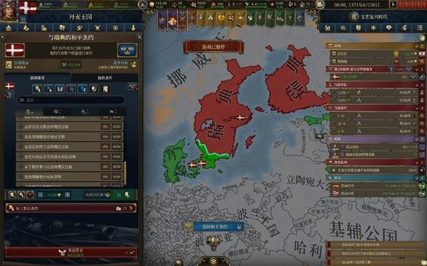 只要咱们正统比较低,贵族好感度因为没有给特权也低,很快贵族就会和我们暴动,这时候只需要请我们开局伟大的盟友,神圣罗马帝国皇帝帮忙平叛即可,叛乱尽量不要平的太快,因为我们在爱沙尼亚的地会有事件爆出去,如果此时是你的贵族叛军占地就不会爆了。