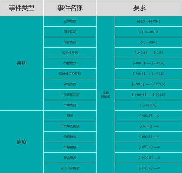 其中【火灾】【疾病】【骚乱】是频发事件,只要相对应的【幸福度】【健康度】【消防安全】数值足够低,就会周期性的发生。