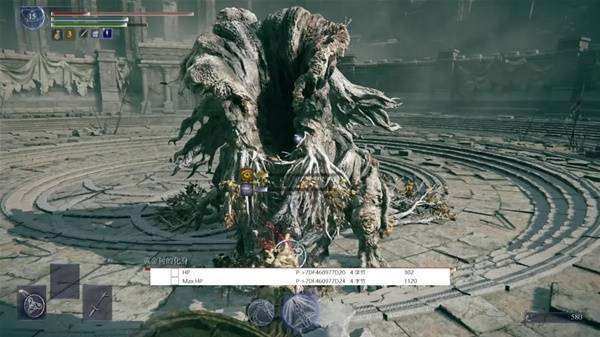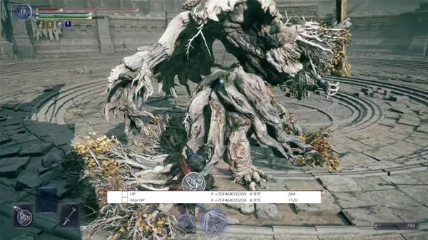 测试方法,Boss竞技场mod用追踪者被黄金树化身的双手竖劈打中,然后进行翻滚攻击回血。