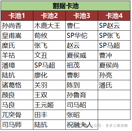 yxb点评:还是熟悉的配方!霸业卡包惯例合并了一批非核心武将,这波最值得冲的肯定是SP关羽和SP赵云,妥妥的版本大核心;