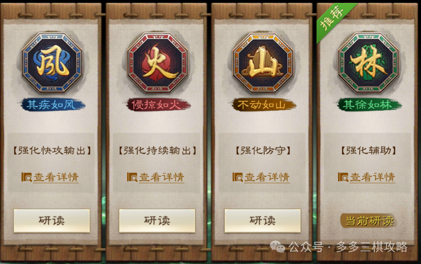 点评:针对控制流武将的,重点是贾诩和徐庶!其疾如风适合快攻,其徐如林偏防御,给坦度高的武将带刚好,大家可以根据阵容需求选。输出武将带韧战补伤害,坦克武将带御极堆生存,灵活度拉满。