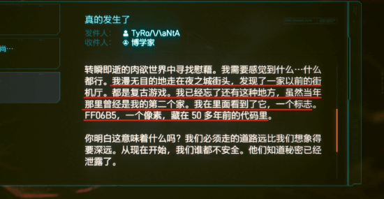 赛博朋克2077这款游戏中有六座雕像中有上图FF:06:B5的提示,很多玩家相信这肯定有所含义,其实这涉及到一个非常复杂的彩蛋。