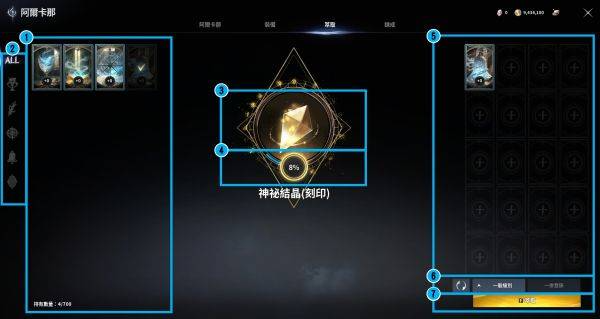| 6 | 炼成 | 炼成阿尔卡那炼成时,将消耗「神秘结晶」与基纳 |