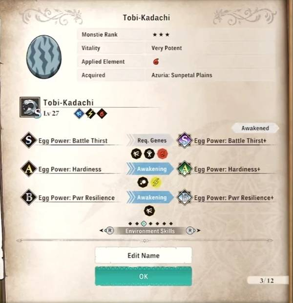 简单来说,这个天赋技能系统可以粗暴的看作是物语1的随从自学技能,因为是先天赋予,所以不可以通过因子传承的系统转移给其他随从,也没有办法将其更换或者剔除并且,大概率每个地区赋予的3个生态技能和2个数值提升效果是不固定的,例如花阳平原有可能是S级别的修罗,A级别的燃烧斗志,B级别的顽强【力】;也有可能是S级别的战斗饥渴,A级别的强韧,B级别的顽强【力】……虽然3个生态技能的组合一定是S+A+B,但正是游戏中的技能池肯定是比较庞大的,刷出心仪的生态技能组再摸蛋获得随从怪物应该会是一个漫长的过程并且,天赋技能又跟3X3因子系统有所关联,如果想要提升天赋技能的效果,就要满足天赋技能的因子条件,而这有可能和强势的因子搭配公式有所冲突……在培育和搭配的时候会需要玩家做出取舍。