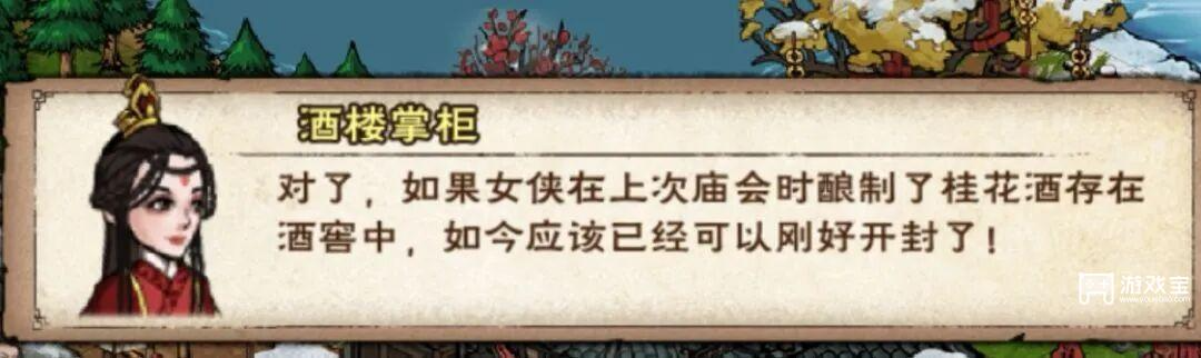 (5)烟雨酒楼,领取上一年活动酿的桂花酒等,并且可以酿酒留到明年喝,提供一些韧性效果等。