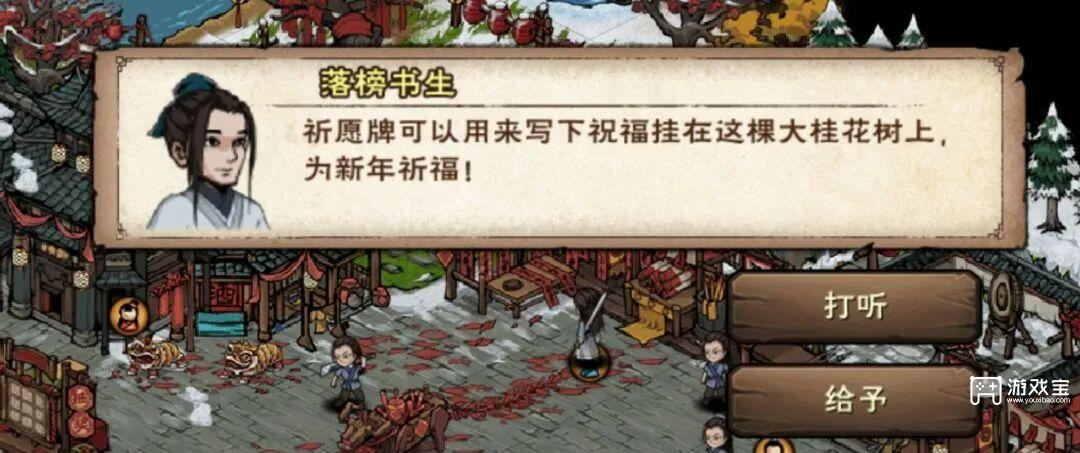 (3)多余的集字,交给落榜书生,可以得到10烟雨钱+一个祈愿牌(祈愿给100烟雨钱)。