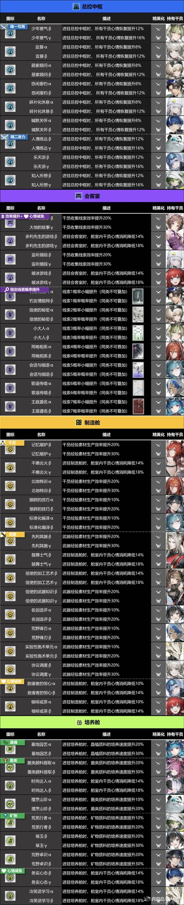 《明日方舟终末地》帝江号干员基建技能一览