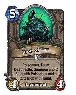新:5费4/4 剧毒。嘲讽。亡语:召唤一个2/2并具有剧毒的黏团,以及一个2/2并具有嘲讽的黏团。