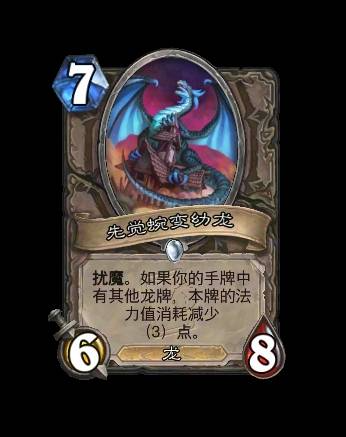 改动前:[法力值消耗7] 每回合中,你的第一张战吼随从牌的法力值消耗为(1)点,但会在被使用后立即死亡。