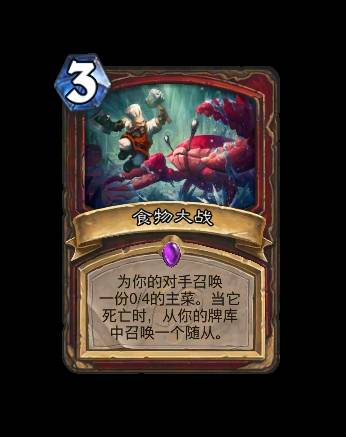 改动后:[法力值消耗9] 你的战吼随从牌的法力值消耗为(1)点,但会在被使用后立即死亡。