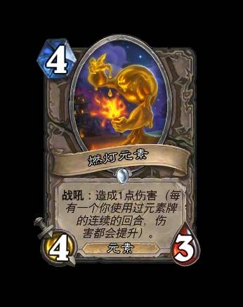 改动前:4/4。战吼:如果你在上个回合使用过元素牌,则造成4点伤害。