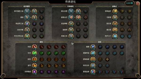造兵是骑士、弓手、牧师、猎犬和投石车,功能设施则有碎片获取、遗物获取、雇佣兵等