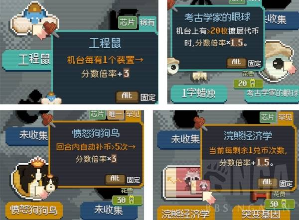 最后也是最重要的是构筑方式:因为分数的结算是依靠分数×倍率,为了不断提升自己的得分,这个时候你可以依靠的有:币夹、礼品和芯片