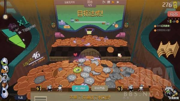 其次是计分方式——游戏中每当你把币推下台面,会积攒连击。