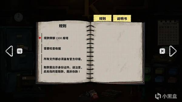 当然虽然听起来很简单,但是制作组在demo中的六天中每一天都增加了新的东西来不断递增游戏的难度,比如在第二天出现了各种假的身份卡,玩家需要根据官方给出的文件进行鉴别,比如游戏的第四天数钱机器坏掉了,玩家需要手动数钱来进行存取款,比如第六天监狱释放了一大批囚犯,玩家不仅需要对照身份卡,还需要对照清算证明书等等。