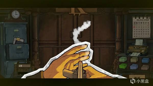 另一个值得夸赞的地方是游戏的画面,游戏的画面是类似于纸片的手绘风格,尤其是在第一天下班之后玩家和领导坐车再车上抽烟的画面,制作组完美的通过了一帧帧的手绘图片拼凑起了其完整的过程,而这种风格贯穿了游戏的始终,一些过场动画和事件中也采用了这种颇为细腻的画风。
