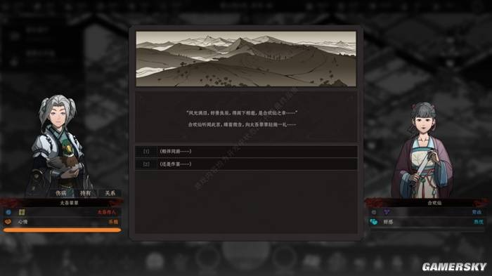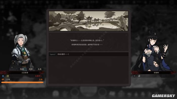 先莫要误会,我不是说你上来就能和人春宵一刻。但这阵中你能做的事情,倒是风雅无比:吟诗赏花、观画听曲、顺带偷菜宰人——若是囊中钱财充足,一场小小的宴会,便可以迅速叠加花魁的好感,情到浓时,还可以为其赎身并收为同道,为太吾村的人丁兴旺增添几分绵薄之力。