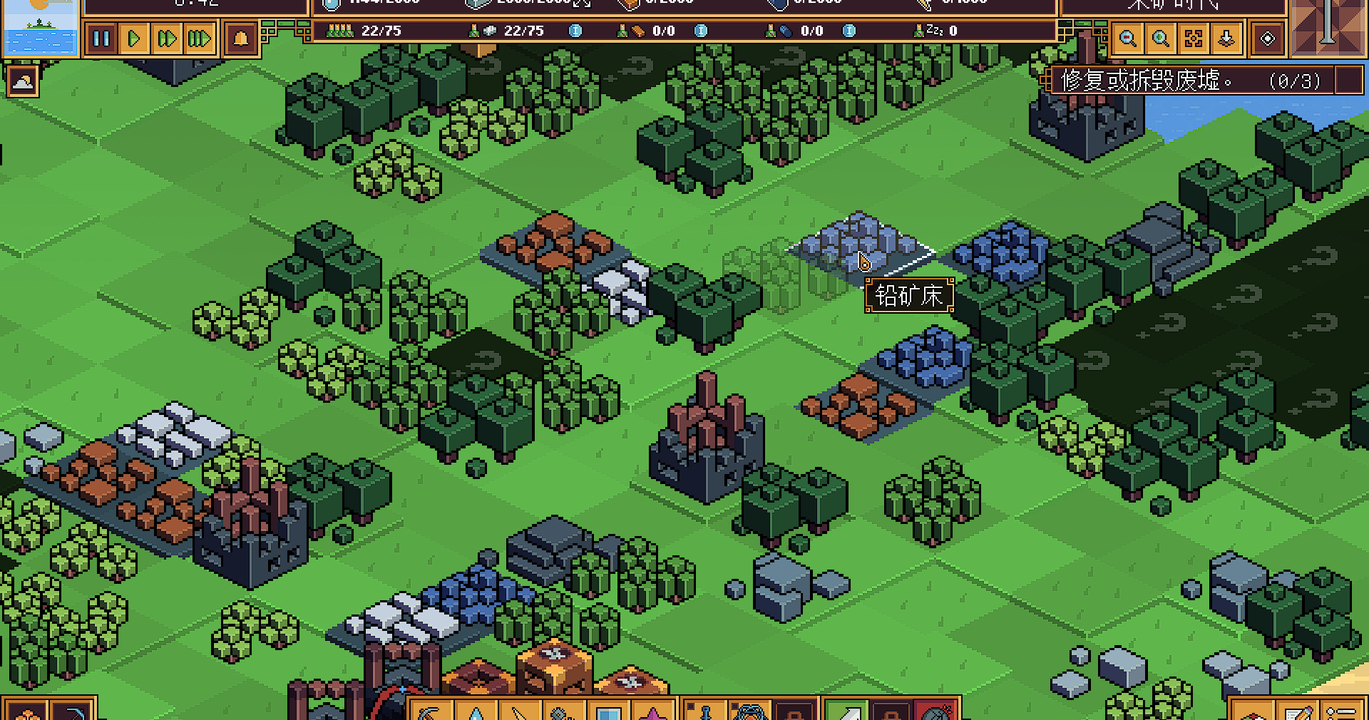 每一关战役的铅矿都足够支撑玩家保护自己的核心领地,在无穷无尽的海浪中顽强存活。这也就是说,只要玩家开始大规模生产铅,不断上涨的海面就不再是个威胁了。而如果玩家开局随机到“人造地面停滞海面上涨”或者“人造地面有概率不被淹没”的科技,那苟延残喘的资源需求下限还能更低。