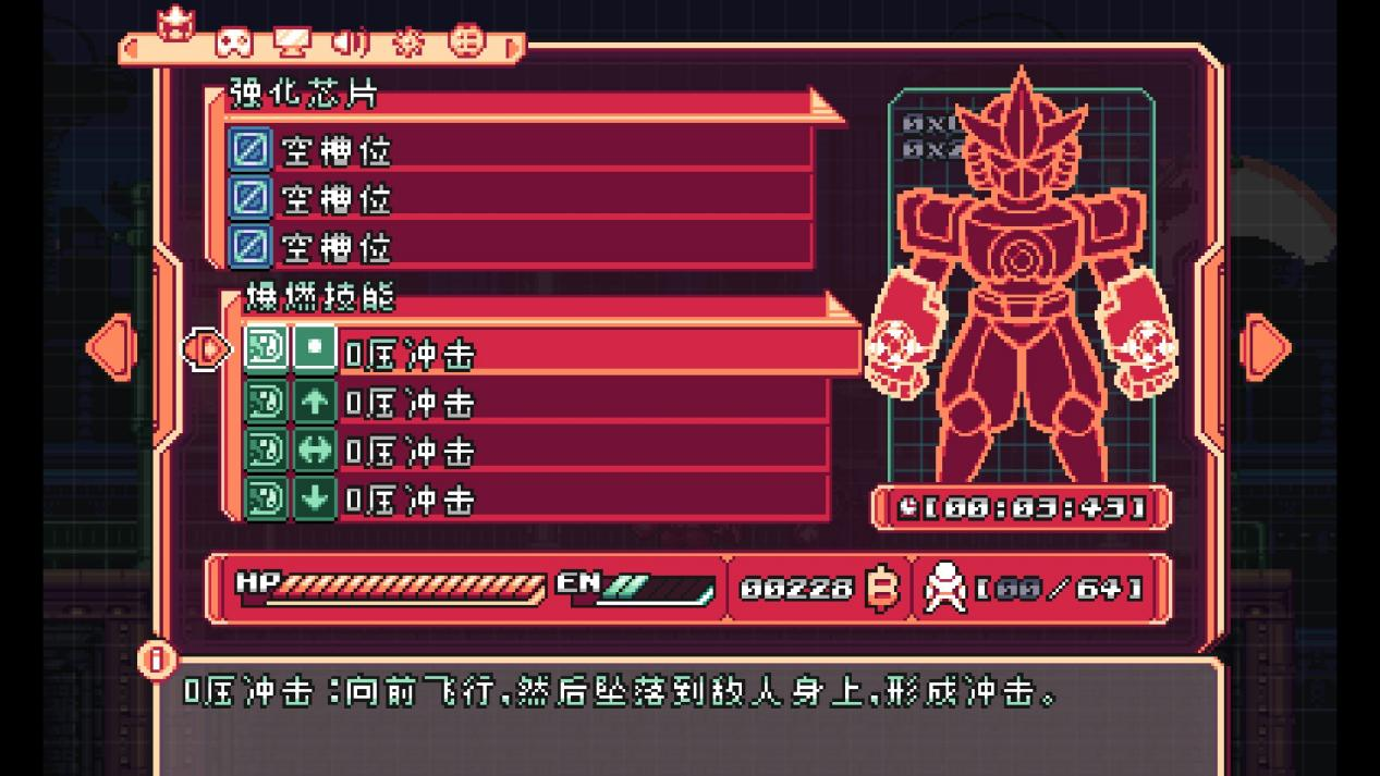 为了丰富流程,也为了让自己玩起来别有一番乐趣,《重力回路》其实也在系统方面下了一些功夫。比如可以强化各方面性能的芯片,以及各类形态不一的技能。