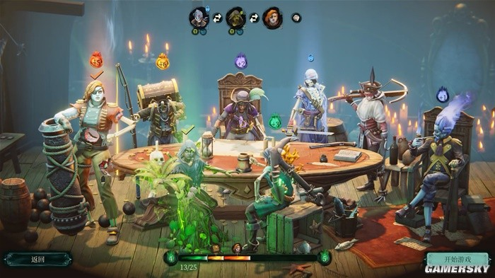 在游戏起始,你仅有一名领航员能够操控,但随着完成任务,收集到了更多的黑珍珠和灵魂能量,你就能逐个复活剩余的七位船员,集结起一支庞大的队伍。