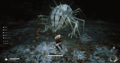 游戏也有关于闪避维度的法术。区别于正常的闪避,法术的闪避可直接获得一段隐身效果,并在主动脱离隐身时突顶Boss施加一个打断效果,拿到一次进攻节奏。此外还有之前演示视频中就有出现过的分身术(技能名为身外身法),召唤一大批小猴子来分担Boss的仇恨,给我们一个加血喘息的空间。