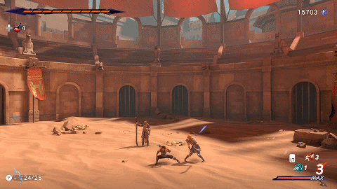 在完成序章回到波斯都城后会解锁“炎火迸发”的特殊能力,这种能力就是多数游戏中都有的终结技,通过攻击或受击积攒能量槽来释放,算是很稀疏平常的一种玩法,所以这里就不作过多介绍了。