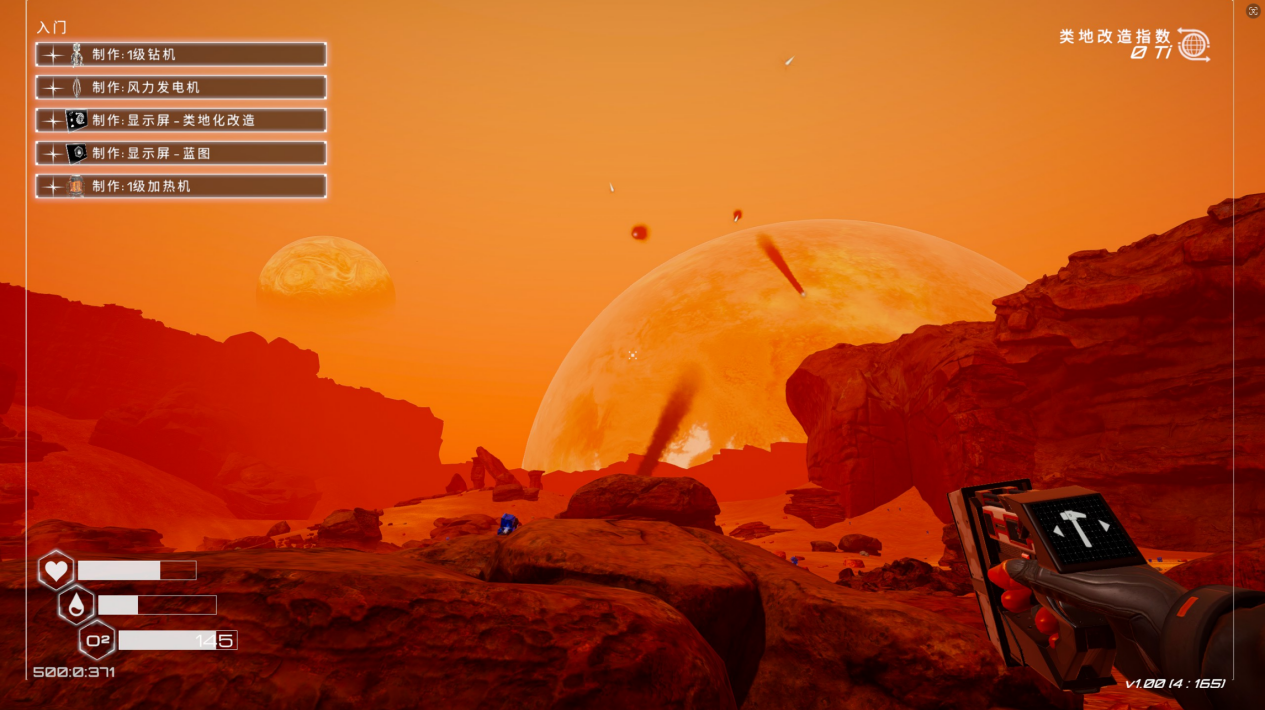 缺氧气就补氧气,缺温度便补温度。玩家的主要游玩手法,就是拍设少量机器设备,然后挂机等待“类地改造值”提升便可。
