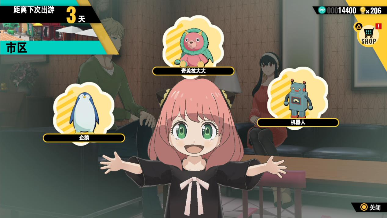 《间谍过家家:日记大作战》的局外循环就在这种低成本的关系中诞生——玩家拍摄阿尼亚的日常瞬间,获取游玩小游戏所需的点数,再通过游玩小游戏获取局外货币,最后使用货币购买解锁更多地点所需的道具,以及带有各种附加效果的角色服装。