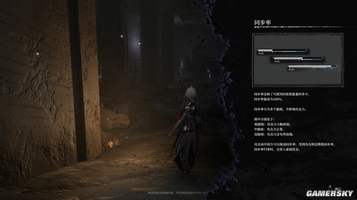 游戏的另一处特色在于“同步率”系统。这是角色可使用“原浆能量”的资源条,无论是释放武器技能,还是威力更强大的“术式”,都需要消耗原浆能量。消耗能量或受到攻击之后,角色的“同步率”便会下降,而当攻击命中敌人时,则会上升。同步率会直接影响到角色的攻击力,如果玩家一直尝试释放远程技能“风筝”敌人,那么角色的同步率会越来越低,攻击力也会随之下降。