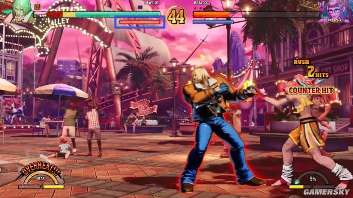 值得一提的是,玩家也能通过停止攻击和贴近对手等方式削减REV槽,实现人为控温的效果,因此,REV系统成为了一种实质上的战斗资源,如何控温或是让对手进入过热的资源不利状态可能会成为《饿狼传说CotW》正式版的核心博弈内容。