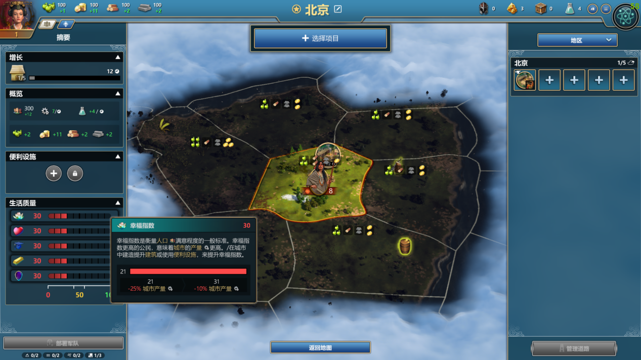 比如,部落集会和首都大炉里生产的“盛宴”,就可以极大增加初期城市的人口增长和幸福度。如果到了后期时代,玻璃窗、冰箱、计算机等各式各样的产品,都可以增加城市产出。