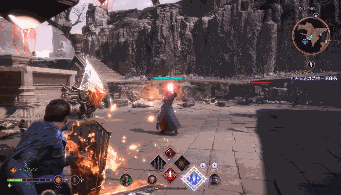 《影障守护者》的战斗完全偏向了现代ARPG设计,策略要素弱化到几乎不存在。玩家也不再需要为队友指定AI和行动模式,因为他们在战斗中连血条都没有,是字面意义上的“无敌”。展开的时停快捷轮盘选单里,也没什么策略性可言,本质上是等队友的CD好了之后就丢技能辅助玩家。