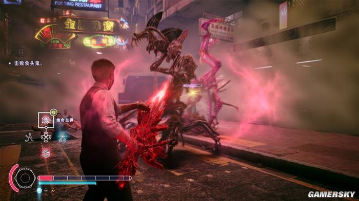 更具体地说,除了动作冒险要素外,它还有点像《428:被封锁的涩谷》那种群像叙事AVG游戏。因为玩家所扮演的主角并非人类,而是名为“猎之灵”的神秘生物,可以附身在不同的人类身上进行探索或战斗。游戏中还有一些骨骼惊奇的特殊人类,被称为“奇才”,当他们被猎之灵附身后,便会觉醒出更强大的能力。故事也会在被“食头鬼”侵袭的香港街道中,通过“猎之灵”与诸多奇才共同的视角展开。