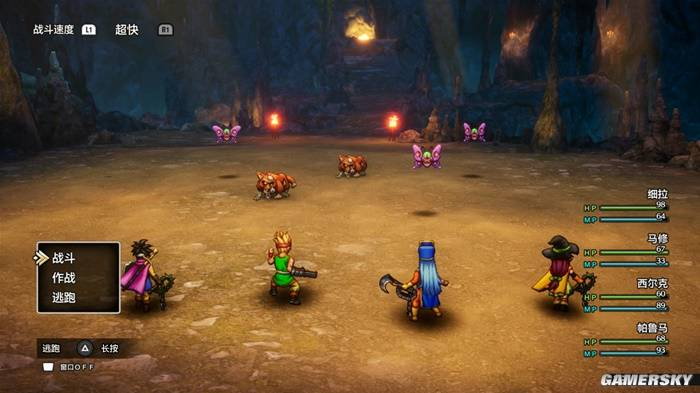 作为整个游戏中的核心,《DQ3 RE》的战斗系统依然是经典的“老一套”——先对我方四人依次下达指令,然后敌我双方按速度排序行动的经典回合制。