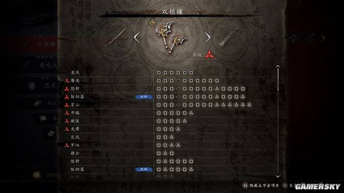 乍一看,《忍龙》的系统没什么复杂的,甚至有点像格斗游戏——轻重攻击连段,还有浮空、落地、蹬墙时不同状态的派生机制,以及几乎没有数值成长的ACT战斗。唯一硬核点的,可能就是复杂得像格斗游戏出招表那样的,每把武器有几十种连段的设计。