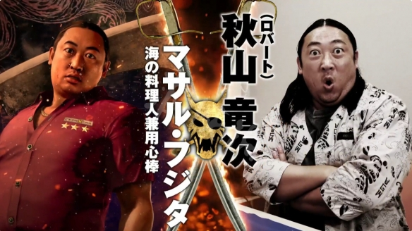 不知从什么时候开始请明星出演《人中之龙》成了系列的传统,《人中之龙6:生命诗篇》请到了导演兼演员的北野武和小栗旬,《人中之龙8》请来了为《咒术回战》、《BANANA FISH》等作品献唱过主题曲的King Gnu乐队主唱井口理。出演本作的则是日本知名搞笑艺人秋山龙次,值得一提的是另一位演员青木崇高曾在2024年播出的《人中之龙》真人版饰演真岛吾朗一角。