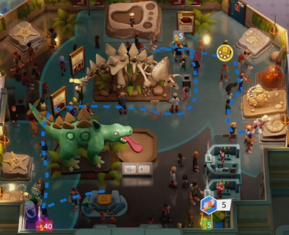 在本作中,双点工作室终于是放弃了《双点医院》和《双点学院》的线性关卡制设计,我们现在最多只会拥有五个固定的博物馆,它们分别属于五种不同的主题地区,会随着博物馆的建设和探索进度的提高逐步开放。