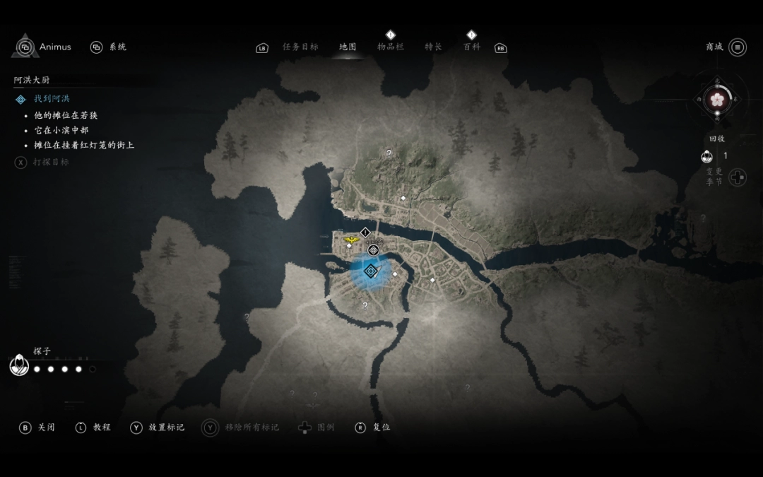 比如,游戏中的“探子”系统,在我看来就多少有些鸡肋。虽然探子可以帮助玩家在季节交替时从敌人营地里回收素材,但如果你要发挥它的全部作用,最好就是要关闭游戏的引导探索功能,然后纯靠模糊的文字描述和消耗探子数量,来完成对任务目标所在地的搜寻。