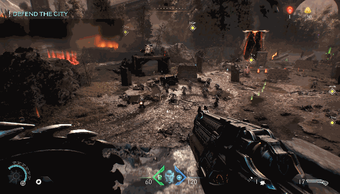 在面对前作中的那些精英敌人时,也需要采取新的对策。例如面对机械蜘蛛的激光炮台时,由于本作甚至没有瞄准功能,所有武器都只能腰射,很难像在《永恒》那样在远处狙击掉炮台。就只能用盾锯先吃下一串机枪子弹,再冲锋瞬移过去给它几锤直接干掉。