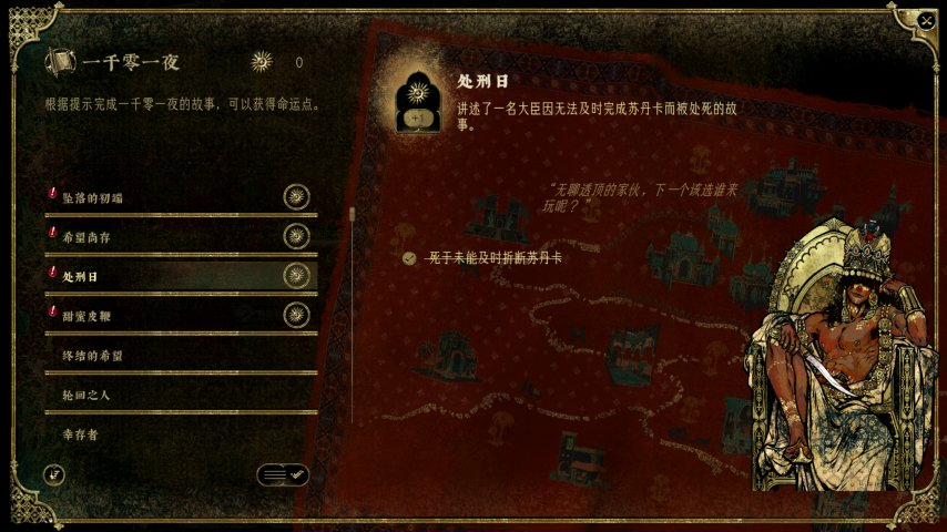 在《苏丹的游戏》菜单中,“一千零一夜”可以理解为成就系统,满足了相应的成就可以获得命运点,除此之外,在游戏内干掉苏丹也可以获得命运点;“命运商店”则可以利用挣得的命运点兑换局外强化,除了强化自身属性外,还能购买饰品、强化角色、获得房产等等,进一步丰富了游戏的肉鸽体验。