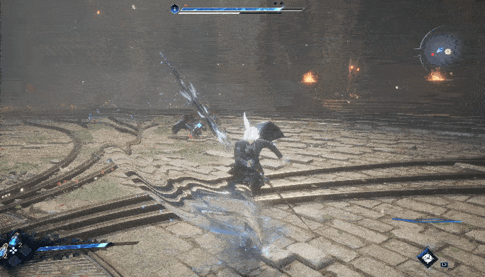 游戏同样为“精确闪避”与“完美防御”这类高风险动作设定了高回报机制。精确闪避会获得周身浮动的光点资源,玩家可以消耗这些光点,发动一次特殊攻击。部分敌人的强力攻击会伴有蓝色的攻击预兆,若能在正确时机进行完美防御,就会令敌人进入一段较长的硬直。