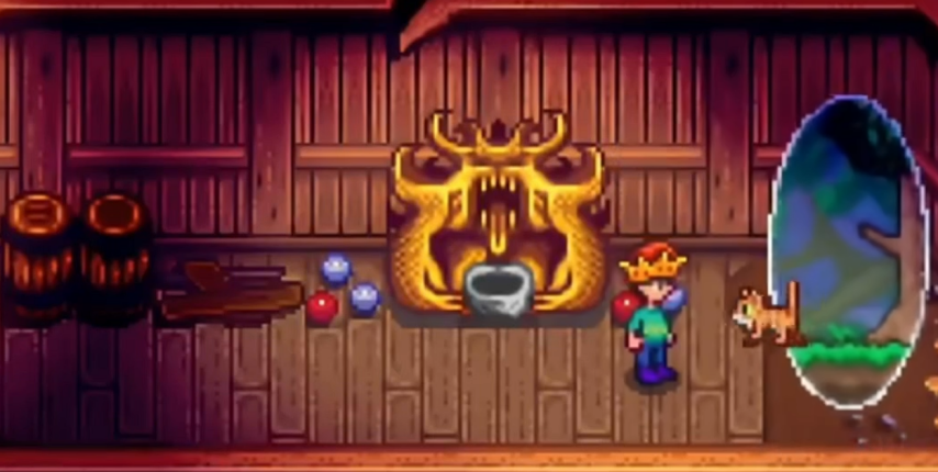 例如与《泰拉瑞亚》的联动,纯粹源于两位开发者之间的欣赏。于是《泰拉瑞亚》中出现了来自星露谷的可爱动物,而《星露谷物语》里也加入了《泰拉瑞亚》的标志性武器。