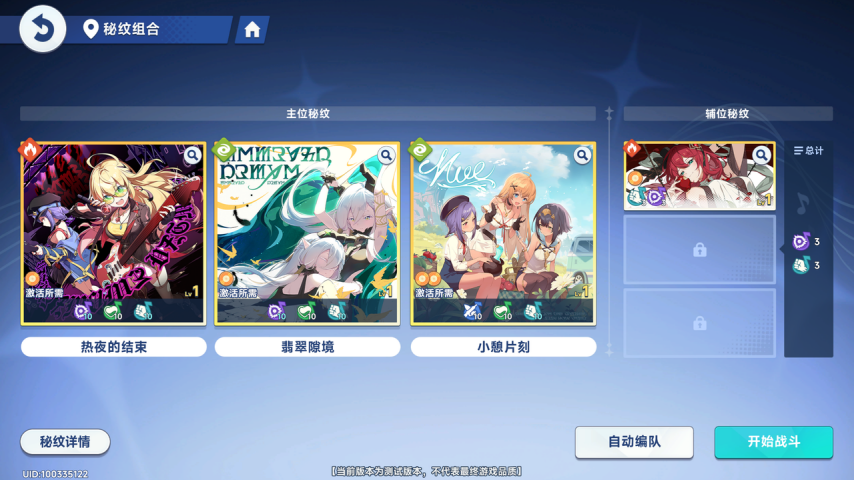 选定角色后,要选择秘纹。可以将秘纹理解为装备,分三个主位和三个辅位。主位秘纹有主动技能,辅位秘纹只加属性(比如“暴击伤害+5%”“生命值+10%”之类的)。